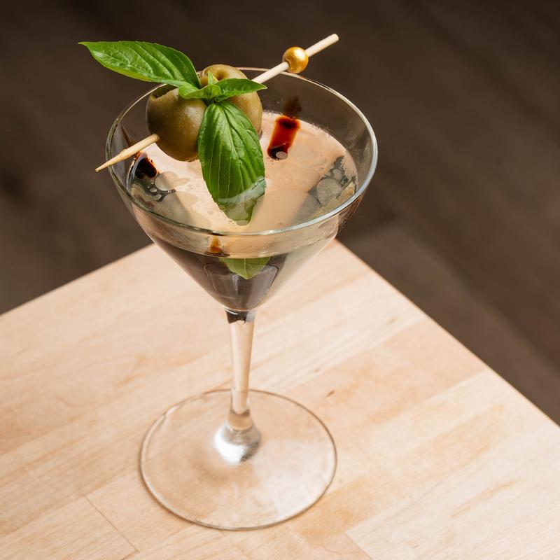 Basil & EVOO infused Beluga Noble vodka, white vermouth, balsamic dashes