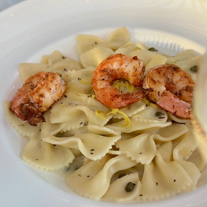 Farfalle in Picatta sauce and lemon zest.