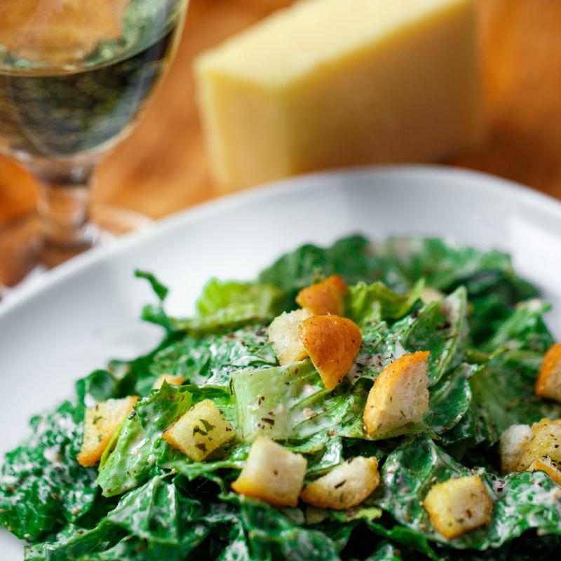 Crisp romaine lettuce with parmigiana cheese, homemade creamy Caesar dressing