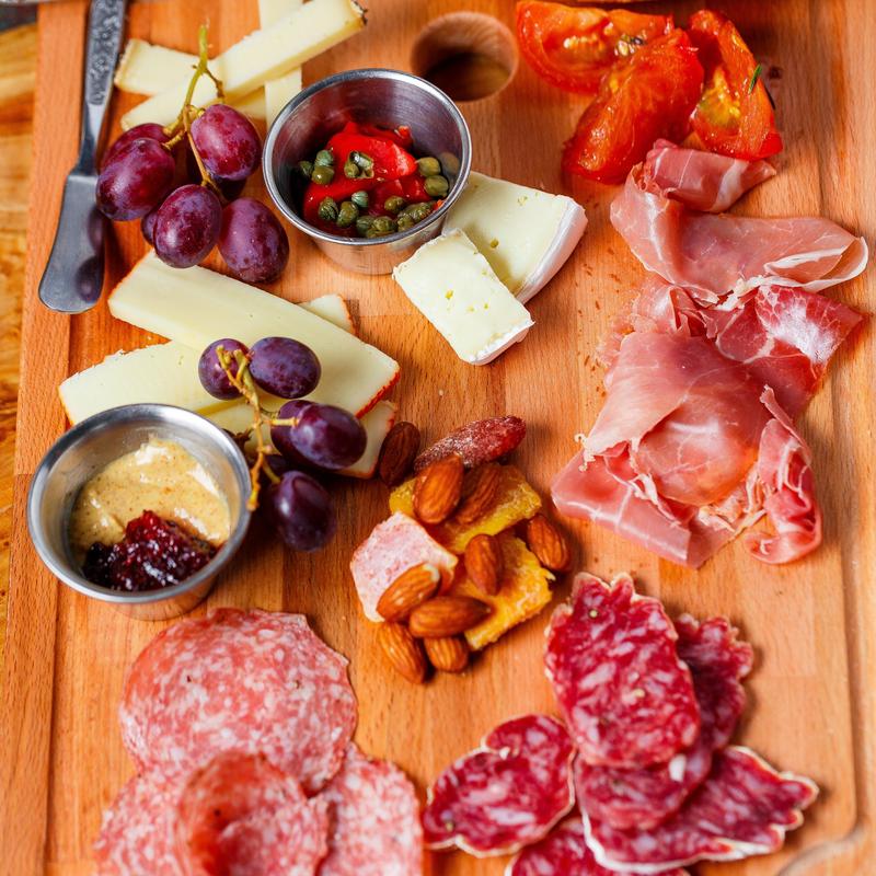 Select salumi and aged cheeses served with what’s available from: Olives, capers, crostini, dried fruits and nuts, marinated artichokes, mustard and jam etc.