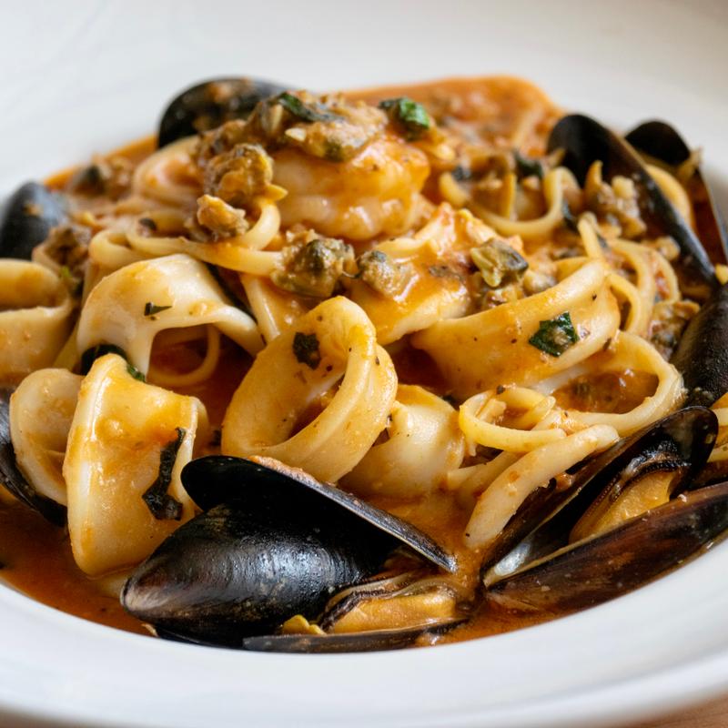 Clams, mussels, calamari and shrimp in Marinara and white wine broth.