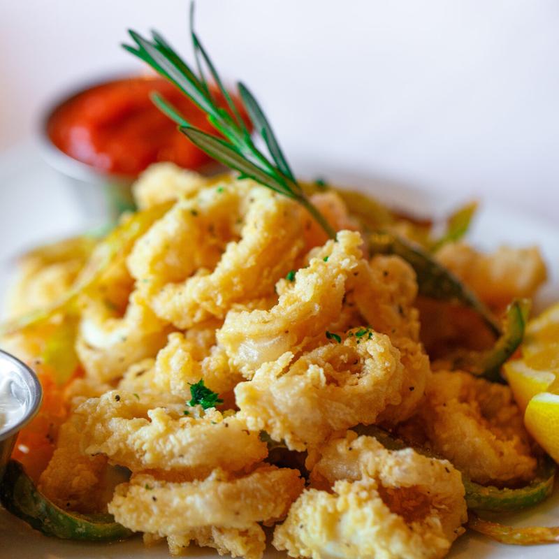 Farina dusted calamari, baby shrimp and green long peppers served with garlic aioli and spicy marinara.