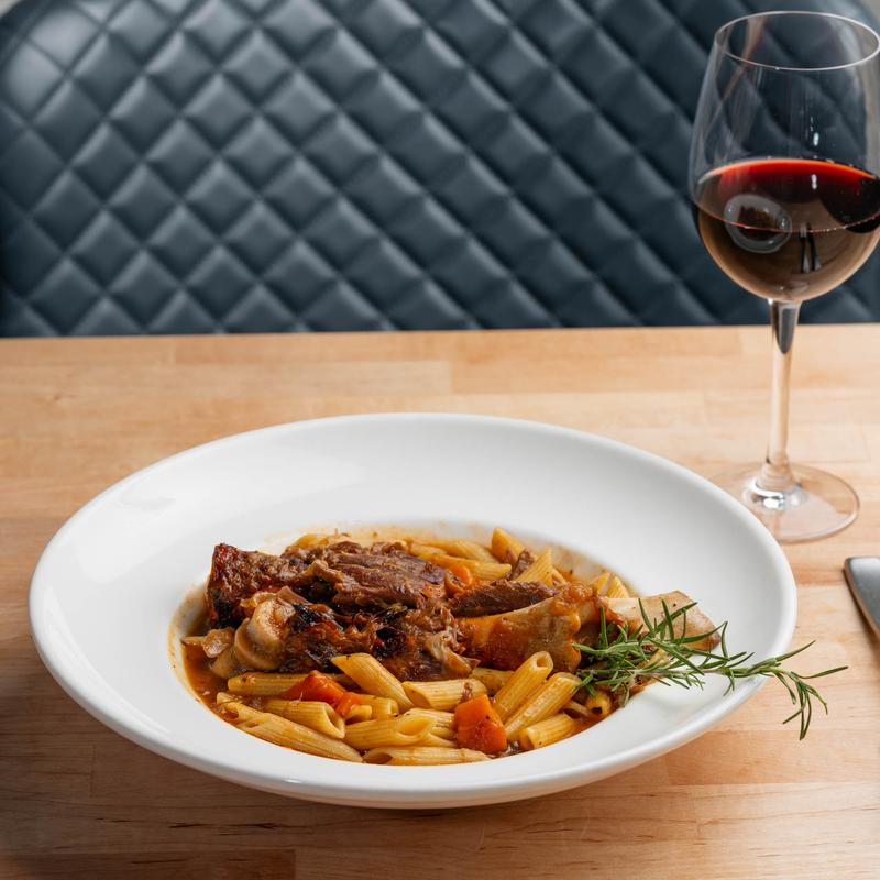Over 6 hours Chianti braised short ribs of beef, sauteed herb mushrooms over mashed potatoes.
